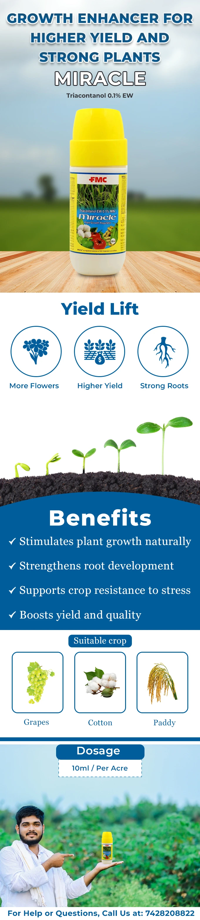 मिरेकल क्रॉप न्यूट्रिशन में 0.1% ईडब्ल्यू ट्रायाकोंटानोल होता है। यह एक तेल-में-पानी इमल्शन फॉर्मूलेशन है।