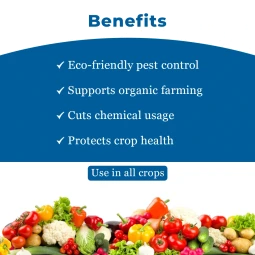 क्रियाविधि: ये प्राकृतिक जैव-नियंत्रण एजेंट हैं जो पौधों को हानिकारक कीड़ों और अन्य आर्थ्रोपोड से बचाते हैं। ये कीड़ों की चयापचय प्रक्रियाओं में हस्तक्षेप करके उन्हें नियंत्रित करते हैं। यह उत्पाद नवीनतम डेक्सट्रोज़-आधारित तकनीक से विकसित किया गया है।
