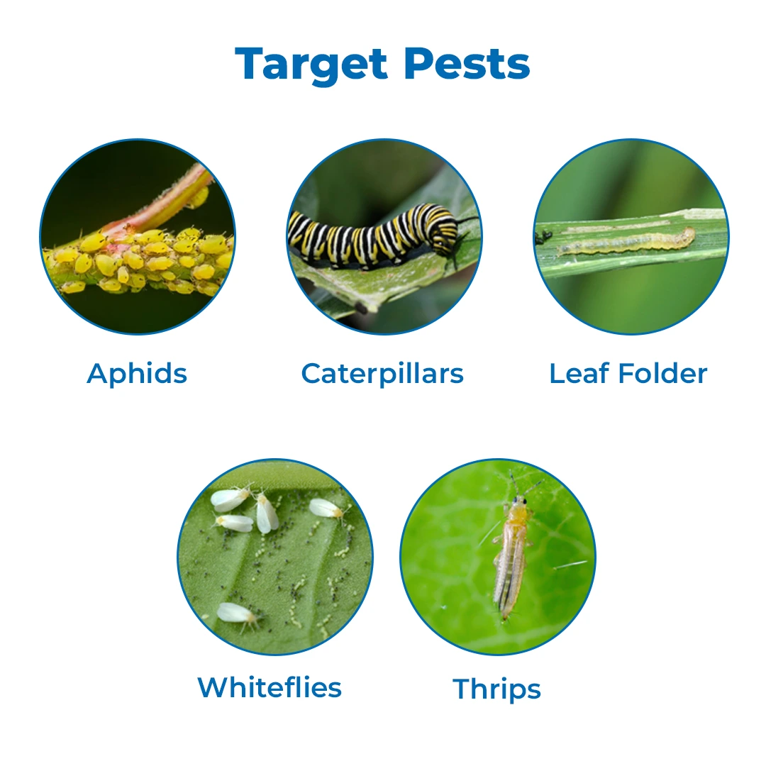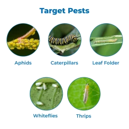 मालाथियन 50% ईसी का उपयोग कृषि, बागवानी, और सार्वजनिक स्वास्थ्य सेटिंग्स में कई प्रकार के कीटों को नियंत्रित करने के लिए किया जाता है। लक्षित कीटों की विशेषता उपयोग और क्षेत्र के आधार पर भिन्न हो सकती है। मालाथियन 50% ईसी के सामान्य लक्षित कीटों में शामिल हैं: