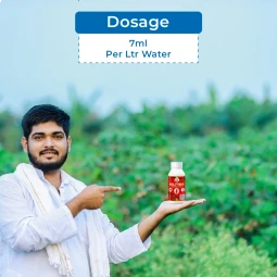 बड़े अनुप्रयोगों के लिए, 250-300 मिली प्रति एकड़ पत्तियों पर छिड़काव करें।