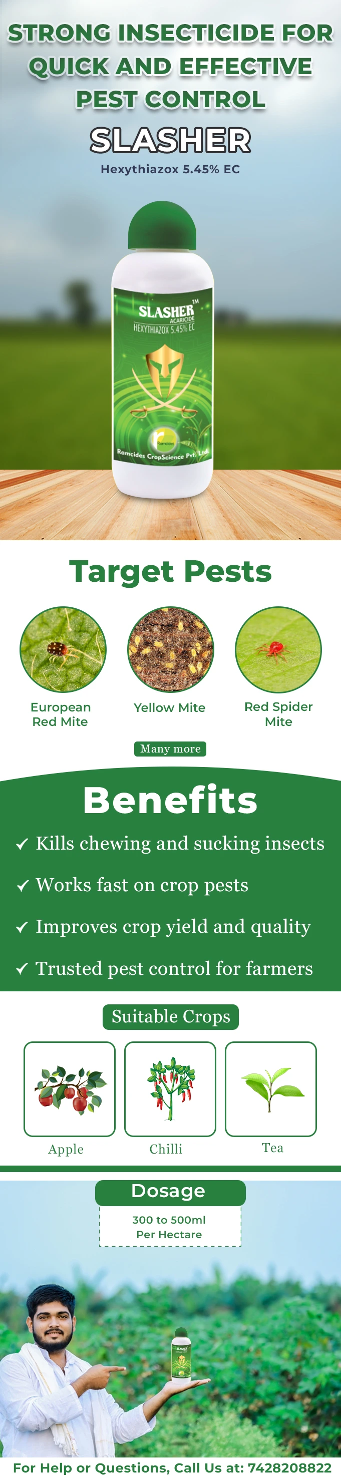 स्लैशर एक नया एकारीसाइड है, जो फाइटोफेगस मकड़ियों पर बेहतरीन नियंत्रण दिखाता है। यह भारत में पेश किया गया पहला IGR (इनसेक्ट ग्रोथ रेगुलेटर) एकारीसाइड है। स्लैशर की अनोखी रसायनिक संरचना में अद्भुत ओविसाइडल, लार्विसाइडल और निम्फिसाइडल गुण हैं, जो विभिन्न फसलों में फाइटोफेगस मकड़ियों की कई प्रजातियों को प्रभावी ढंग से नियंत्रित करता है।
