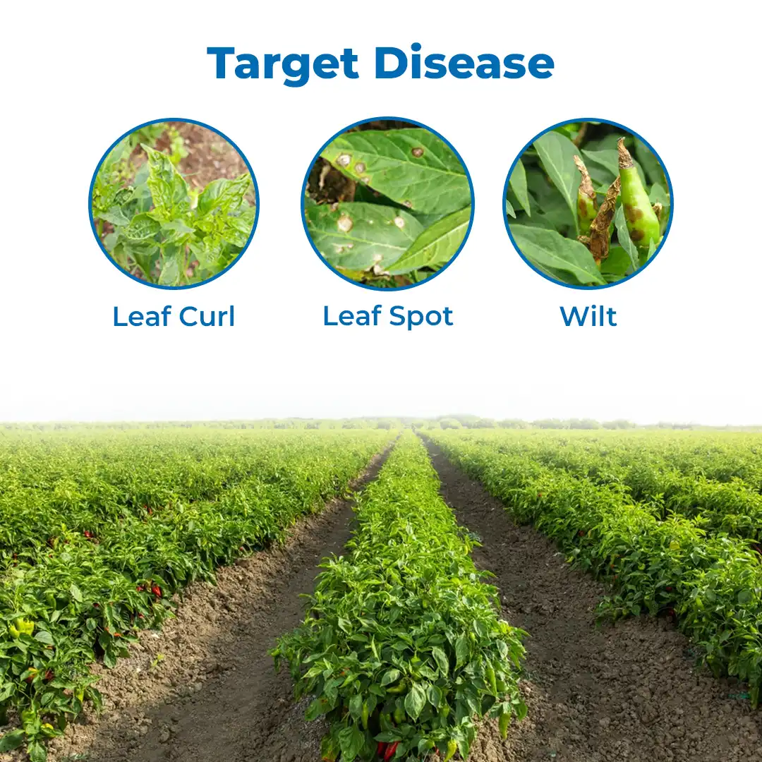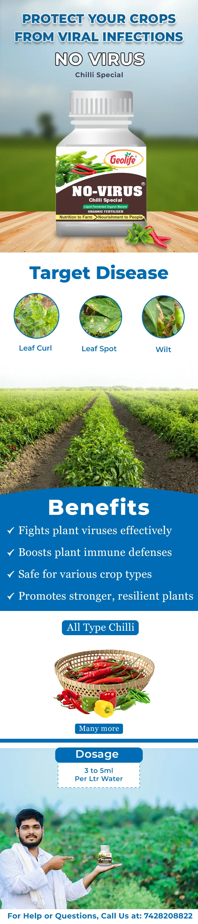 जियोलाइफ नो वायरस चिली एक प्रभावी एंटीवायरस उत्पाद है, जो फसलों को सभी वायरल बीमारियों से बचाता है।
