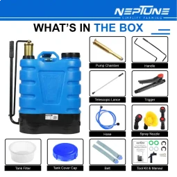 नेप्च्यून नॉकसैक स्प्रेयर एक पारंपरिक और सबसे लोकप्रिय उपकरण है, जिसे पूरी दुनिया में व्यापक रूप से उपयोग किया जाता है। यह स्प्रेयर कई कार्यों के लिए उपयुक्त होता है और कृषि, बागवानी, रेशम उद्योग, वृक्षारोपण, वनस्पति संरक्षण, बागों आदि में उपयोग किया जाता है।