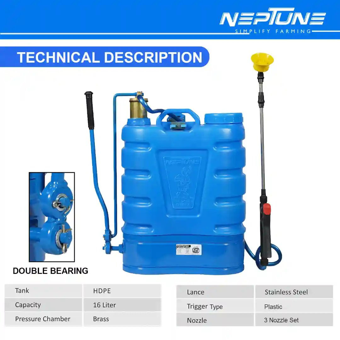 निर्माण सामग्री: उच्च-ग्रेड पॉलीथीन प्लास्टिक, जो कीटनाशक, खरपतवारनाशक और फंगस से होने वाली जंग को सहन करता है।