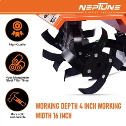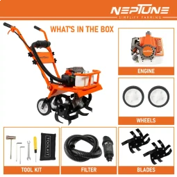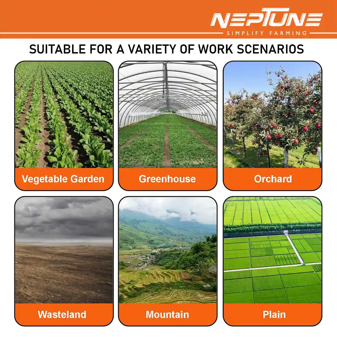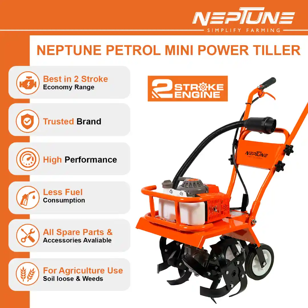 नेप्च्यून पावर टिलर और वीडर एक 2-स्ट्रोक इंजन के साथ गार्डन उपयोग के लिए डिज़ाइन किया गया उपकरण है। यह छोटा और पहियों वाला टूल होने के कारण इसे आसानी से एक स्थान से दूसरे स्थान पर स्थानांतरित किया जा सकता है।