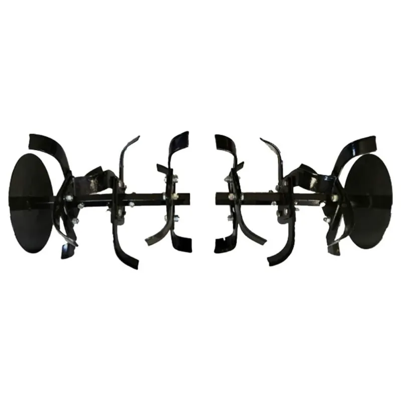 Assemble the rotavator set by attaching blades, shafts, side discs, and securing with provided nuts and bolts