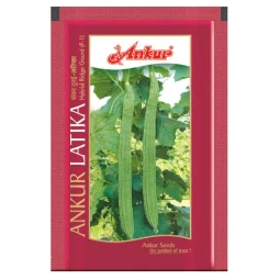 Ankur Seeds HY Ridge Gourd Latika is a high-yield hybrid with long, slender, green, and fleshy fruits. Picking starts in 57-62 days. Suitable for Kharif and Summer cultivation, this variety has good keeping quality and is ideal for commercial farming.