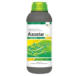 GH Azostar Top is a broad-spectrum systemic fungicide combining Azoxystrobin (QoI) and Difenoconazole (triazole) to provide preventive and curative action against a wide range of fungal diseases. Its dual-action formulation ensures effective inhibition of fungal growth, protecting crops at all critical stages and promoting better crop health and productivity.
