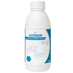 Biosun Agri Crop Science Azosun Azoxystrobin 23% SC is an advanced broad-spectrum systemic fungicide designed to control a wide range of fungal diseases including downy mildew, powdery mildew, rust, and blight. It works by inhibiting fungal respiration, preventing spore germination, and offering both preventive and curative action. Azosun ensures long-lasting protection, promotes greener foliage, and helps farmers achieve improved crop health and higher productivity in grapes, vegetables, and cereals.
