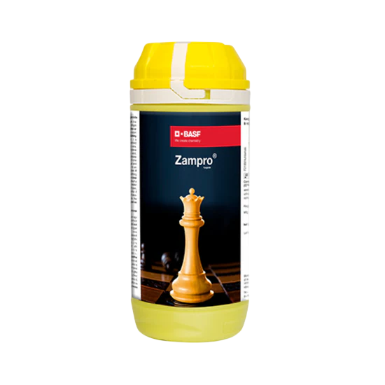 BASF Zampro is an advanced fungicide formulated with Ametoctradin 27% and Dimethomorph 20.27% SC, offering excellent protection against downy mildew diseases. It provides both preventive and curative action, ensuring strong disease control even under high disease pressure. Zampro works effectively on multiple stages of fungal development, giving prolonged protection and reducing crop losses. Its superior formulation enhances crop health, improves photosynthesis efficiency, and supports consistent yield improvement across various vegetable and fruit crops.