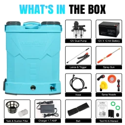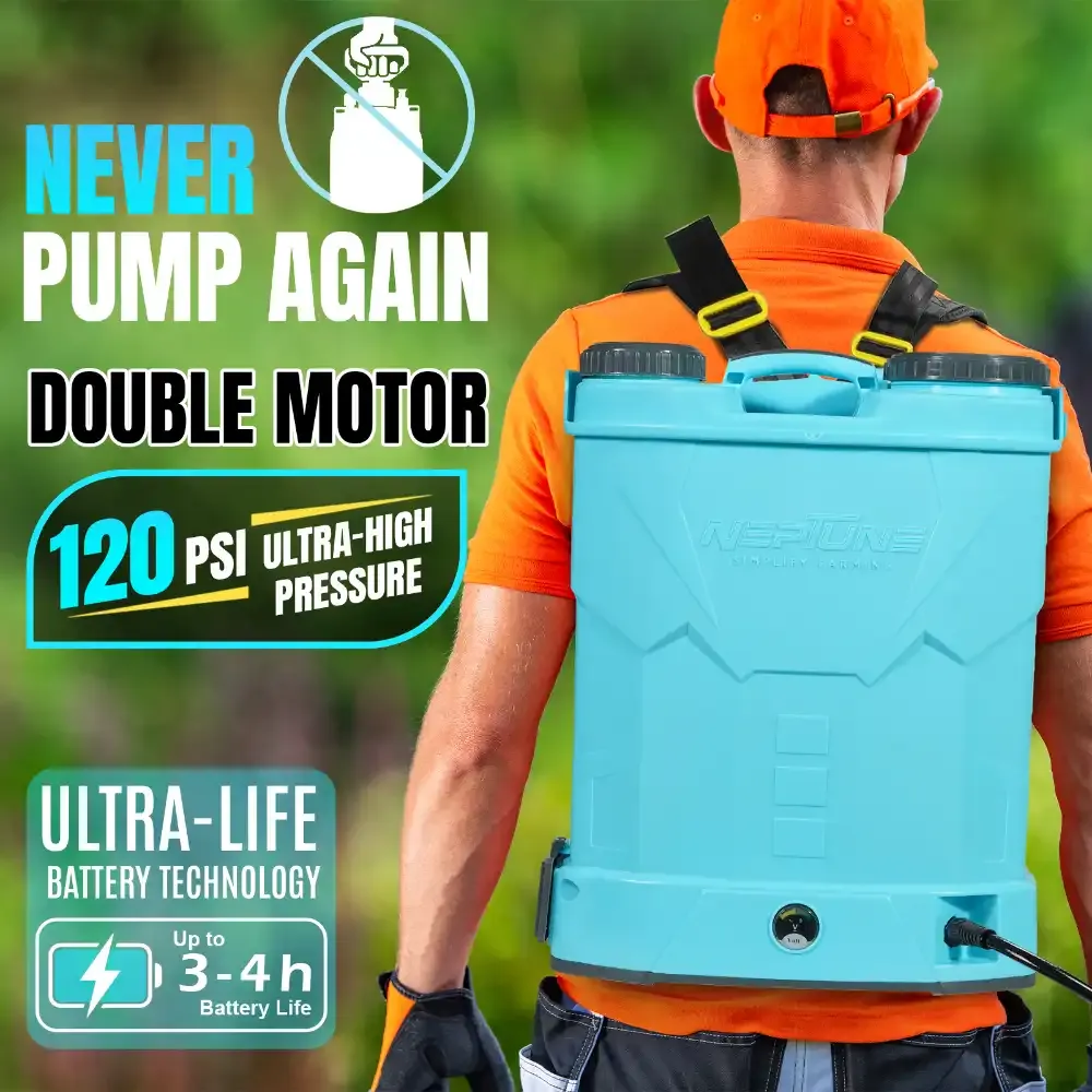 Double Pump Technology: Features a double pump system for increased pressure and enhanced spraying efficiency, making your work faster and more effective.