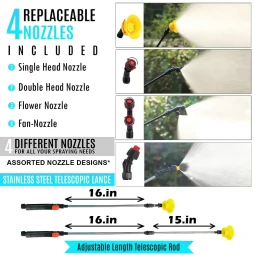 4 Versatile Nozzles Include: Includes four different nozzles for various spraying needs, offering flexibility for a wide range of tasks.