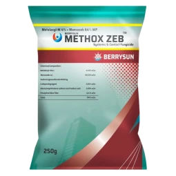 Berrysun Metalaxyl-M 4% + Mancozeb 64% WP is a broad-spectrum fungicide that offers both systemic and contact action to protect crops from severe fungal diseases. With true acropetal movement, it ensures deep penetration within the plant for effective disease management. This fungicide is widely used for controlling Downy Mildew, Late Blight, and Foot Rot, making it an essential solution for farmers growing grapes, potatoes, mustard, and black pepper.