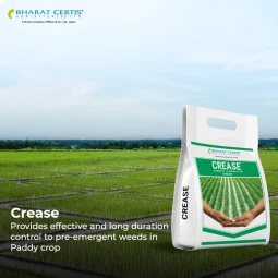 Bharat Certis Crease is a selective, broad-spectrum pre-emergent herbicide formulated with Pretilachlor 6% + Oxadiargyl 1% GR, designed for transplanted paddy. It provides effective control of narrow and broadleaf weeds as well as sedges for 20–25 days. Applied 3 days after transplanting under 2–3 cm standing water, Crease ensures long-term weed suppression, binds firmly to soil, and is safe for rice crops. Available in multiple pack sizes for easy application.