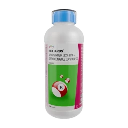 Billiards is a highly effective broad-spectrum fungicide formulated with Azoxystrobin 18.2% and Difenoconazole 11.4% w/w, offering systemic and curative action. It provides protection against major fungal diseases in key crops such as chilli, tomato, paddy, maize, and wheat. Its dual mode of action ensures rapid disease control and long-lasting protection. Translaminar and acropetal movement within plants ensures even distribution of the active ingredients, improving plant health, productivity, and overall yield quality.