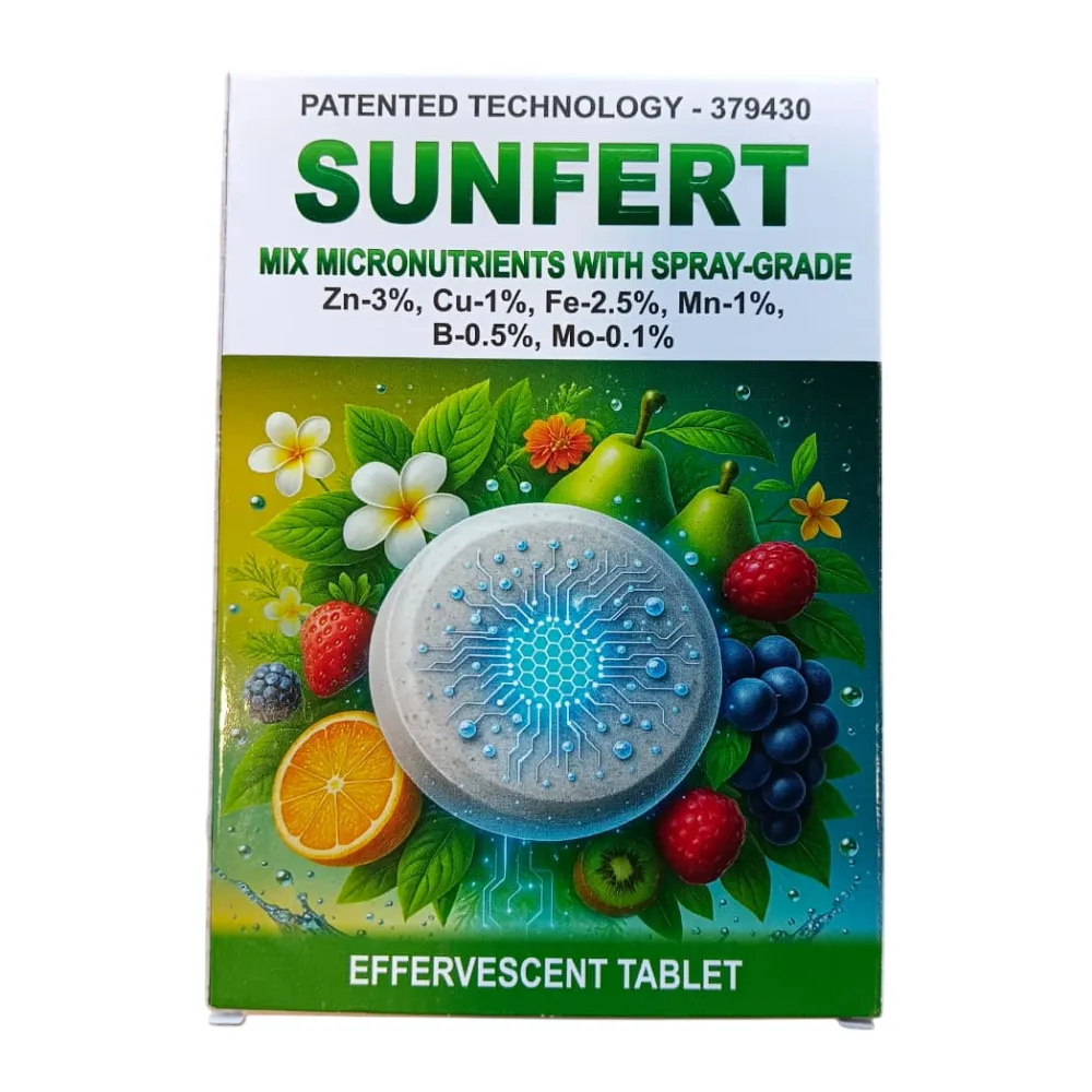 Biofizz Sunfert EDTA Chelated Mix Micronutrient Grade 2 is a revolutionary effervescent tablet formulation designed to correct multiple micronutrient deficiencies in crops. Enriched with essential trace elements like Zinc, Iron, Manganese, Copper, Boron, and Molybdenum, it promotes vigorous plant growth, enhances flowering and fruiting, and improves overall crop health. Its quick-dissolving effervescent action ensures easy mixing, precise application, and maximum nutrient availability, leading to improved yield and quality produce.