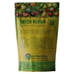 Biowall Green Bloom Biofertilizer enhances flowering and fruit setting with PKZ microbial consortia and biogenic carbon, reducing flower and fruit drop for higher yields, it is recommended during flowering and fruit-setting stages for maximum results.