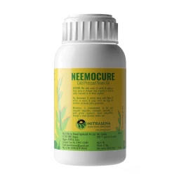 Neem oil in Neemocure has a complex mixture of more than 140 biologically active compounds in organic form. It contains Terpenoids, Steroids, Alkaloids, Flavonoids, Glycosids etc. Active ingredients includes Azadirachtin, Isonimolicinolide, Nimbonin, Salanin, Azadirone, Nimbidinin, Nimbin, Nimbidin, Nimbinin, Nimbicetin, VepininVn, Meliantriol, Meldenin, Mahmoodin, Margosic Acid, Kaempeerol, Quercursertin, B-Sitosterol, Praisine, Vanilic Acid, Meliacins etc.