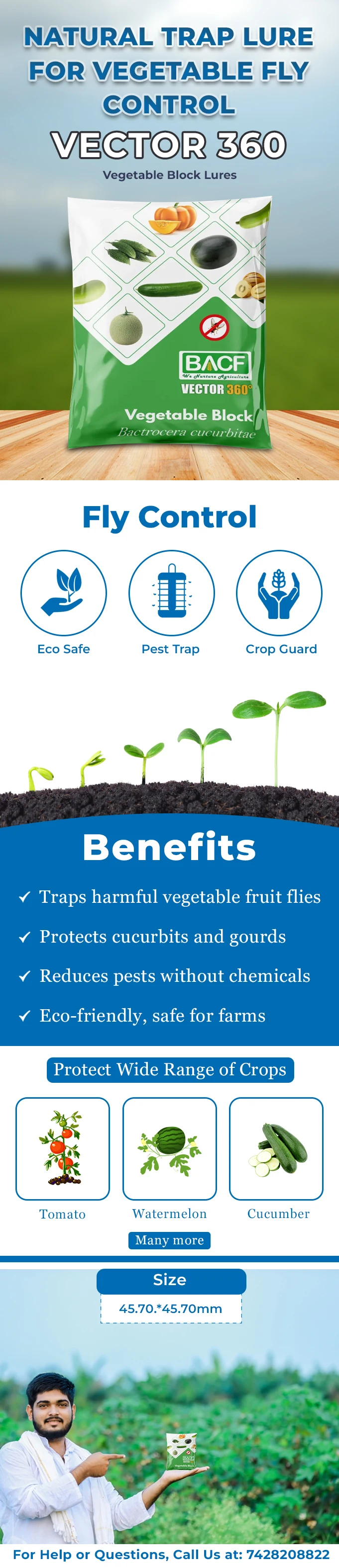 BACF Vector 360 vegetable block lures are used to attract harmful pests and insects to catch them inside the trap. This lure releases specific attractants that target damaging insects like melon fly and captures them. Bactrocera Cucurbitae lures are an organic way to reduce insect infestations and protect crops naturally.