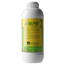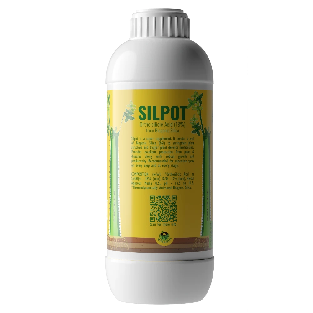 Mitrasena Silpot Ortho 18% Bio Fertilizer by Biowall Agrihealth Pvt. Ltd. is a biogenic silica-based crop supplement designed to enhance plant strength and defense. With Ortho Silicilic Acid (32%), it forms a protective silica wall that shields plants from pests, pathogens, and abiotic stress like drought or extreme temperatures. Enriched with potassium and herbal extracts, Silpot supports robust growth, better productivity, and sustainable farming practices across all crops.