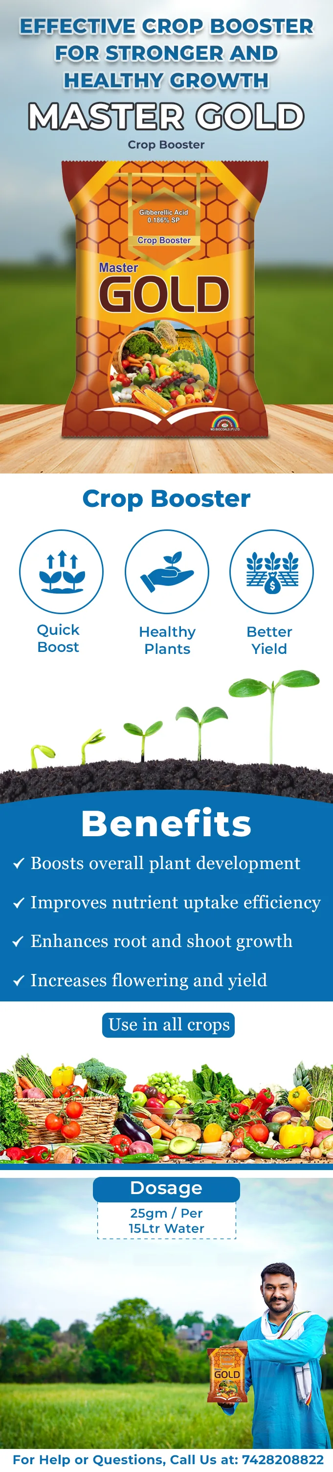 Increased Fruiting: Master Gold Crop Booster increases the number of fruits appearing on every plant, increasing harvest.