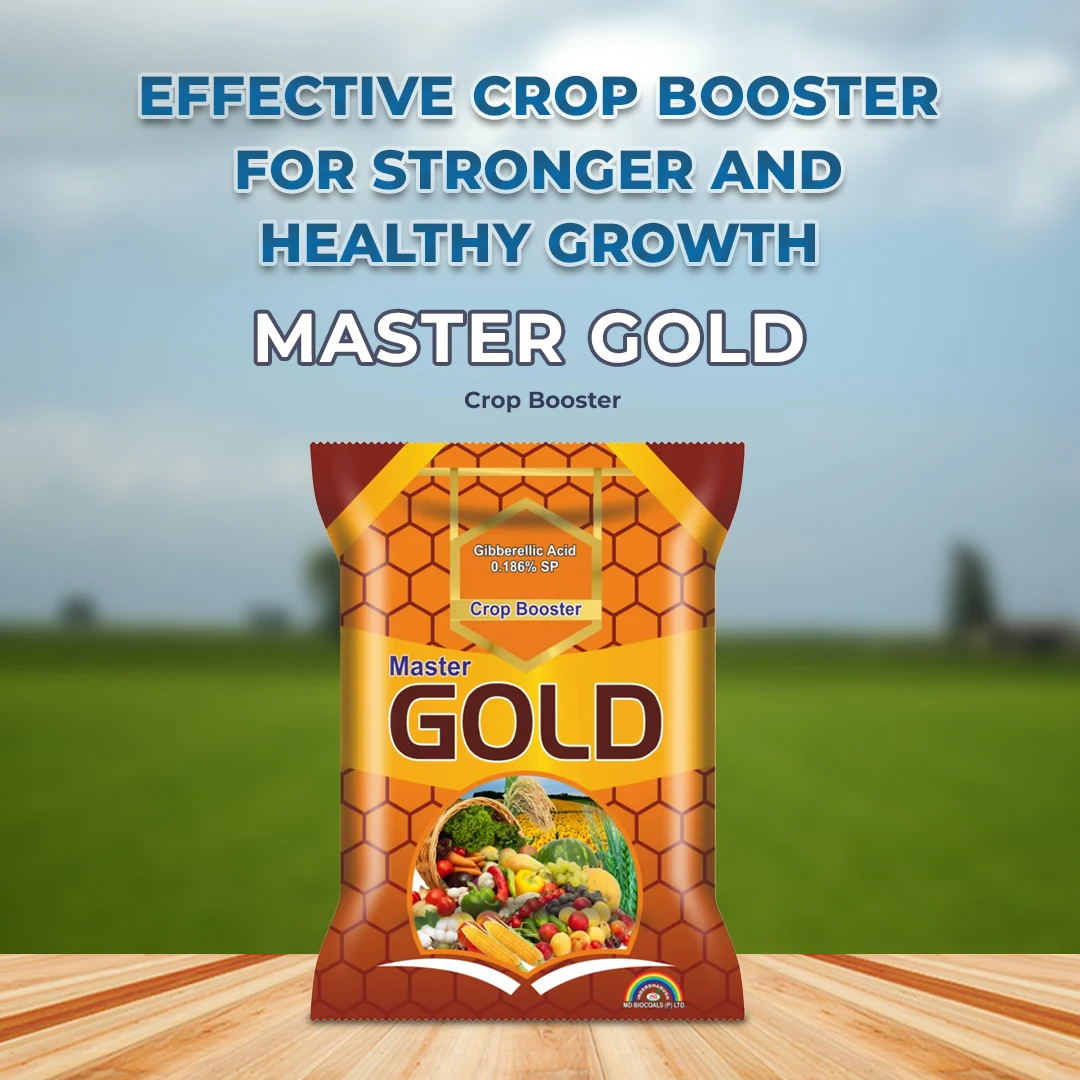 Master Gold Crop Booster is a high-quality crop enhancer containing Gibberellic Acid 0.186% SP. It helps farmers develop better harvests, both in quantity and quality, ultimately leading to improved profits. The Master Gold fertilizer can be used on a wide variety of crops with an easy application process.