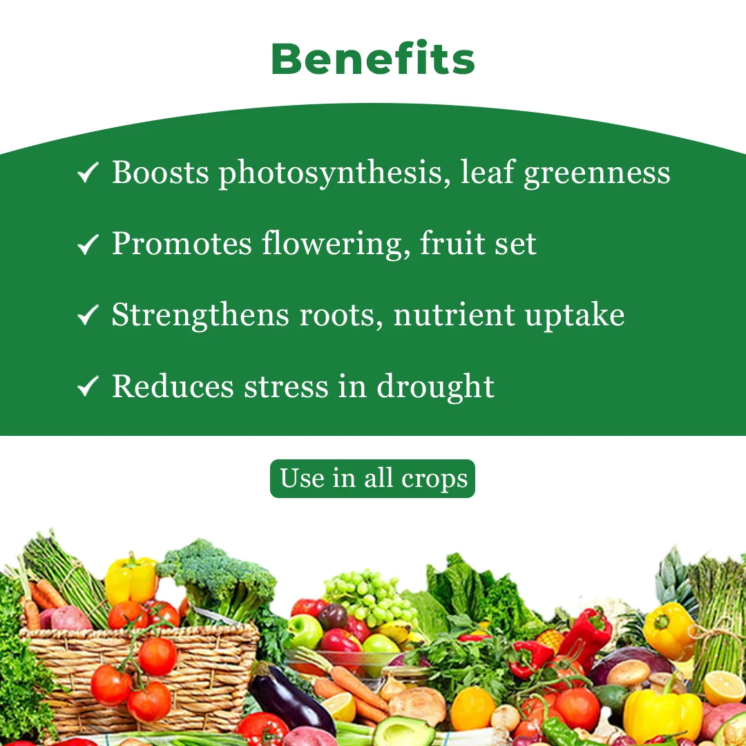 Improves Plant Growth: Grow More enhances various aspects of crop growth by improving photosynthesis.