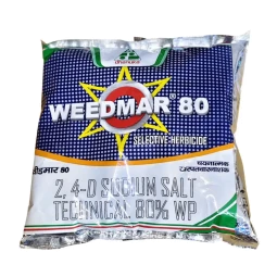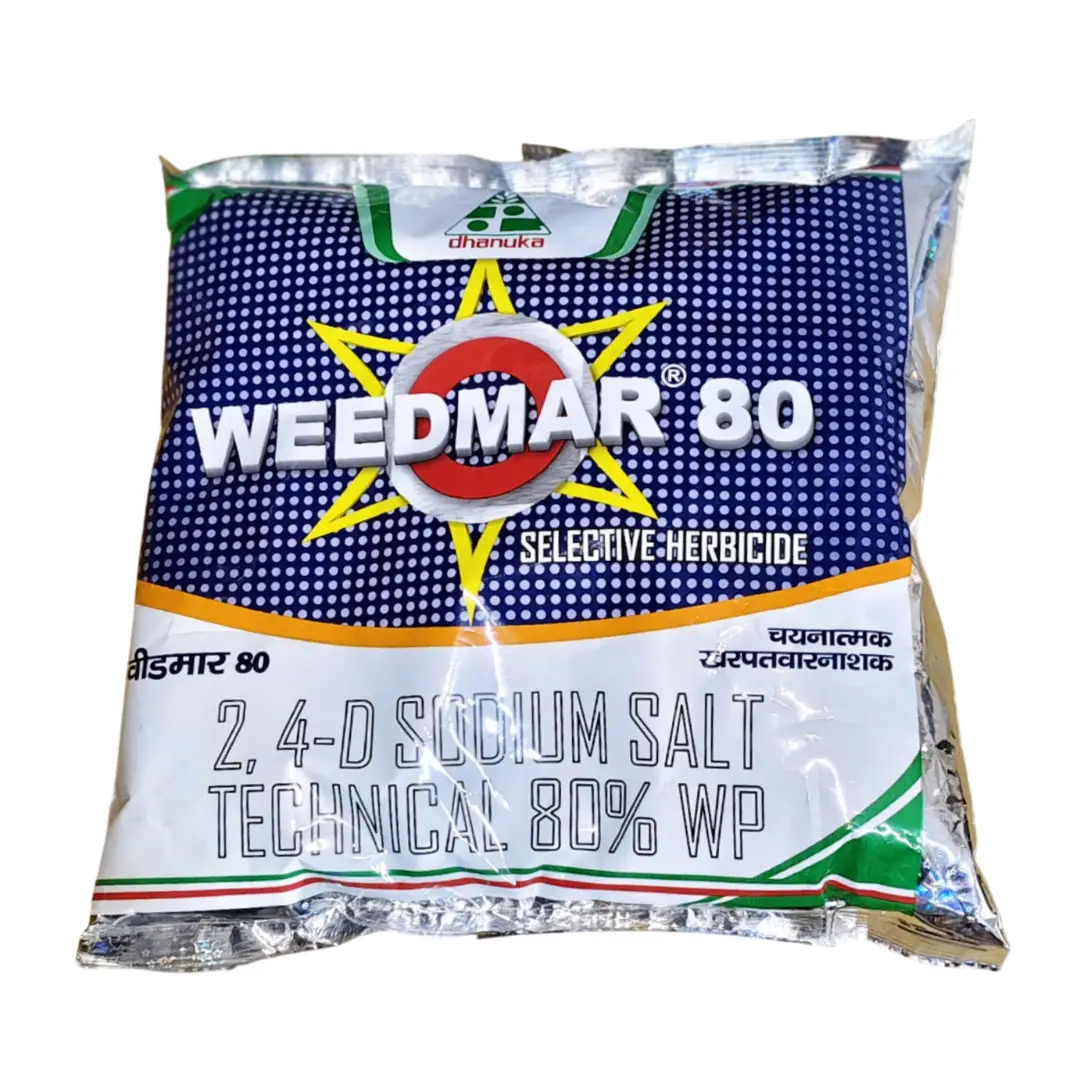 Dhanuka Weedmar 80 is a highly effective and selective systemic herbicide containing 2,4-D Sodium Salt 80% WP, which works by causing uncontrolled cell division in weeds by affecting cell walls, protein production, and ethylene. It controls a broad spectrum of annual and perennial broadleaf weeds in various field crops. The Weedmar 80 is safe to use when used as instructed, and its systemic mode of action ensures effective weed removal.