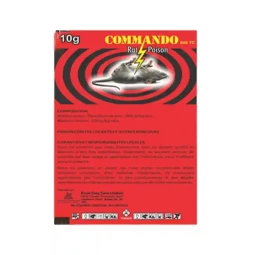 Commando Rat poison is a rodenticide used to eliminate various rodents, including mice, rats, and squirrels. This highly effective rodenticide includes Zinc Phosphide 80% which is consumed by the animal, resulting in their death. Commando Rat Killers ensures complete control over rodents and prevents diseases that can be transmitted by them.