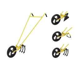 The Hectare multi-attachment tool is a manually operated tractor for all farm operations, such as tilling the soil, making furrows, and weeding. It has a lightweight tire for easy operations, and all three attachments can be easily attached and removed. It has been ergonomically designed to suit the height of all people, and its handle can be adjusted easily to fit different heights.