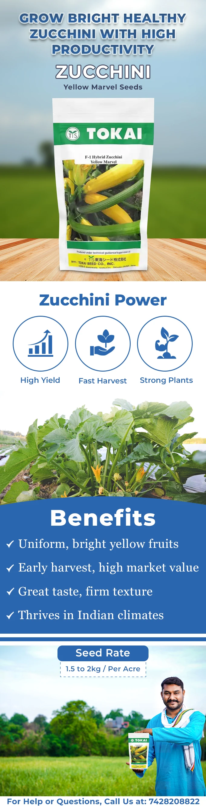 Tokai F1 Hybrid Zucchini seeds are a high-yielding variety, and they are known for providing early maturity to farmers. These yellow zucchini seeds mature in just 45 to 65 days under suitable growing conditions. The zucchini yellow seeds produce high-quality crops with better taste and size.