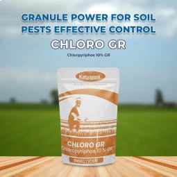 Katyayani Chloro GR is a non-systemic insecticide containing an active ingredient Chlorpyriphos 10% GR. This insecticide is highly effective against a large number of pests on crops like rice and paddy. Chlorpyriphos 10% GR provides immediate death to the insects through contact and stomach action, offering pest-free crops.