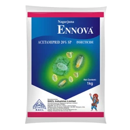 Nagarjuna Ennova Insecticide (Acetamiprid 20% SP) offers effective control of aphids, jassids, whiteflies, thrips, and BPH in cotton, cabbage, chilli, okra, and rice. It provides long-lasting protection with systemic and translaminar action, ensuring superior pest management.