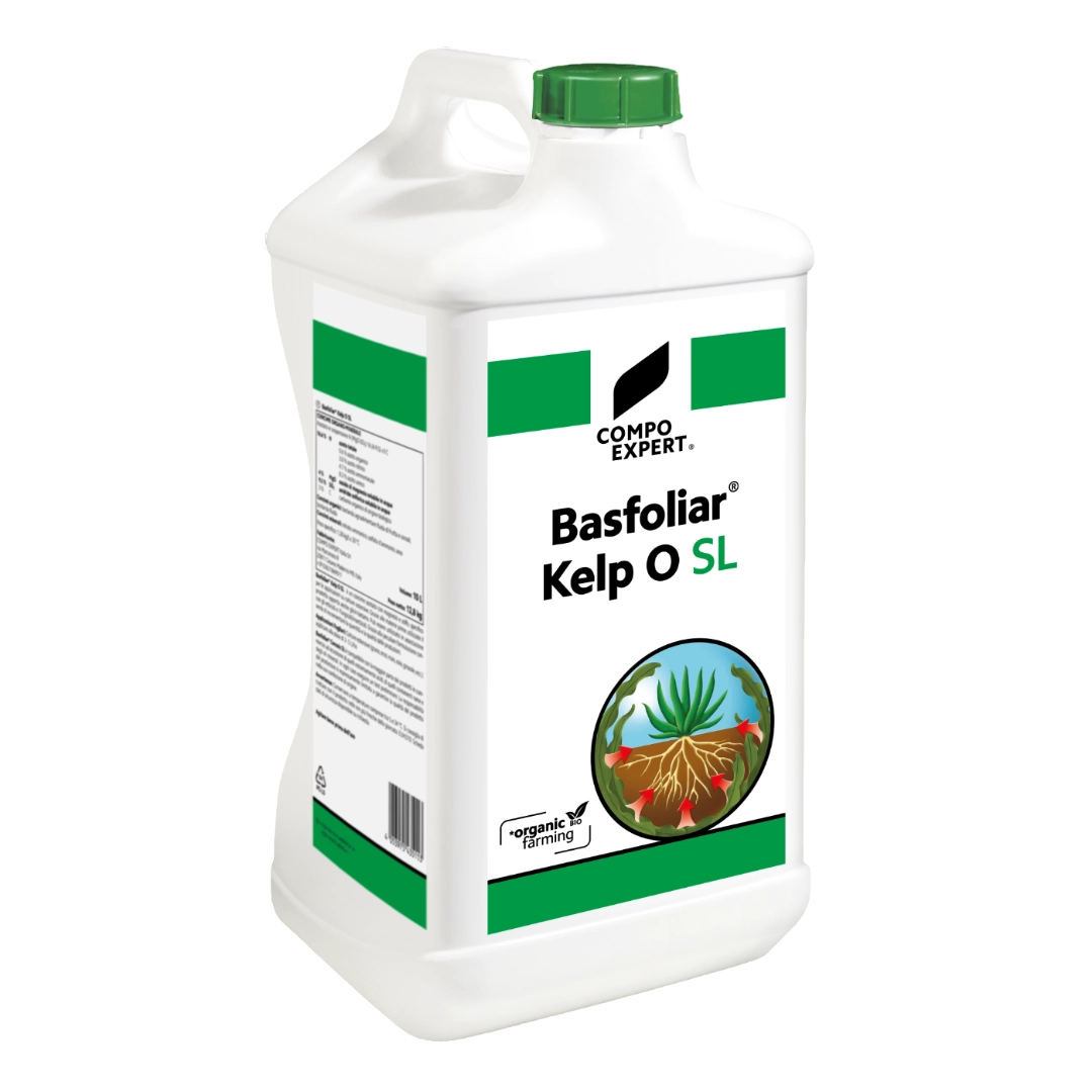 Compo Expert Basfoliar Kelp O SL is a natural biostimulant formulated from the extract of the brown seaweed Ecklonia maxima. It contains naturally occurring beneficial substances such as amino acids, proteins, and carbohydrates that promote vigorous root and plant growth. The product helps plants overcome stress conditions, enhances nutrient uptake, and improves yield and quality. Suitable for use in organic farming, it can be applied both as a foliar spray and through fertigation systems.
