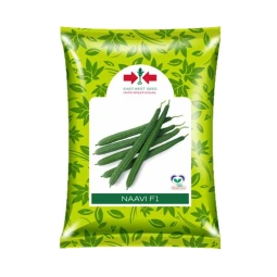Naavi F1 is a hybrid ridge gourd variety from East West Seeds with high yield potential and virus tolerance. The attractive green fruits, slightly dark shaded, are ideal for fresh market and commercial farming.