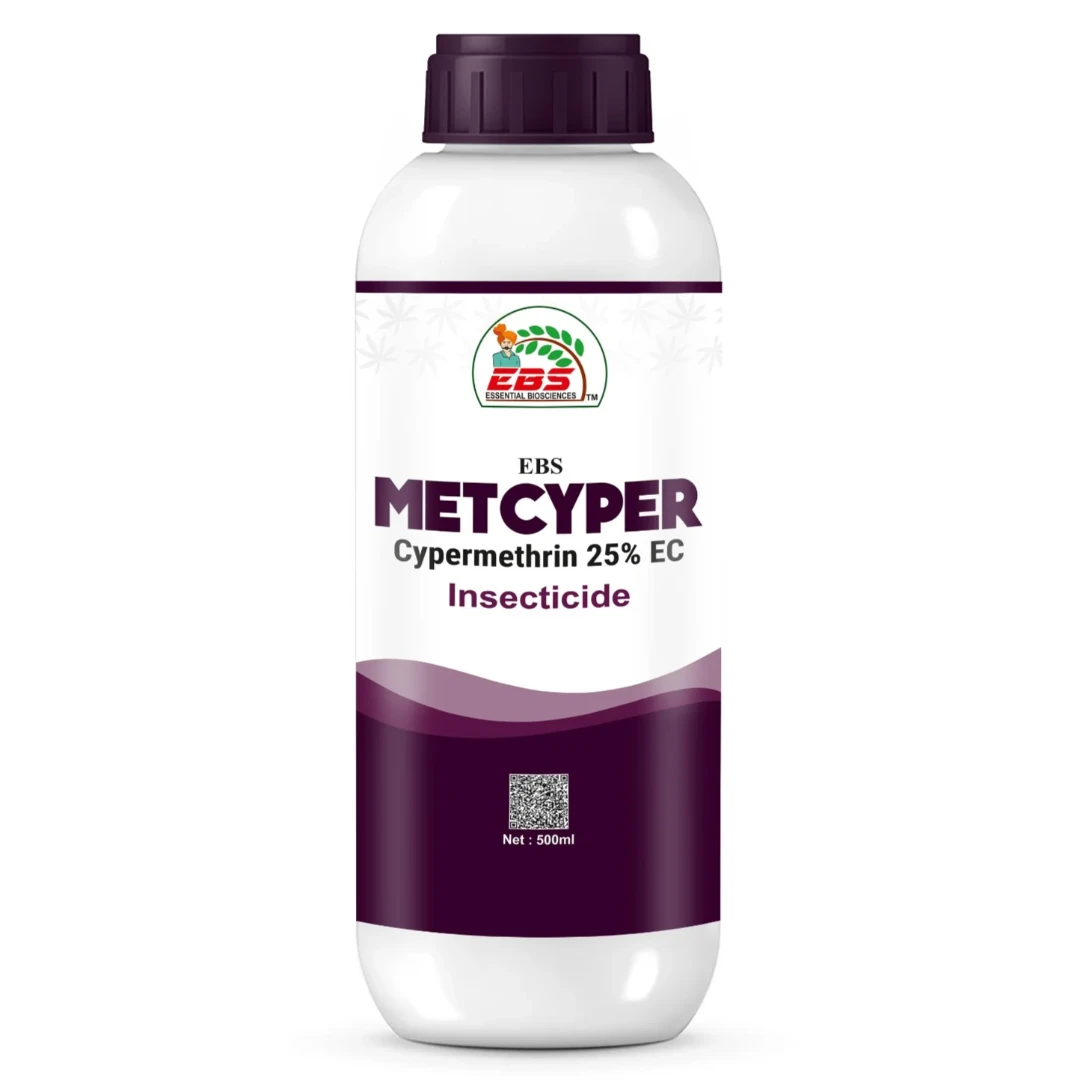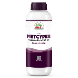 Essential Biosciences METCYPER Cypermethrin 25% EC is a high-performance, broad-spectrum insecticide formulated as an emulsifiable concentrate for effective pest control. It acts as a contact and stomach poison, providing a quick knockdown effect and long-lasting protection against chewing and sucking insect pests. Suitable for field and horticultural crops, EBS Metcyper ensures enhanced coverage and pest elimination, promoting healthy crop growth and increased yield with lasting protection.