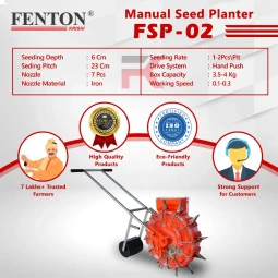 The Fenton Krishi Manual Seeder Planter is a hand-operated seeding tool designed for small to medium-sized farms. It allows farmers to plant seeds at uniform spacing and depth, improving planting efficiency and reducing seed wastage