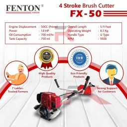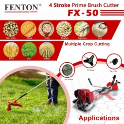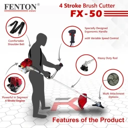 The FX-50Prime is a reliable, efficient side-pack brush cutter tailored for gardeners and small-scale users. With its 50 cc 4-stroke engine producing approx. 1.8 HP, it’s built for light to moderate trimming, edge work, and overgrowth, all while prioritizing user comfort and easy handling.