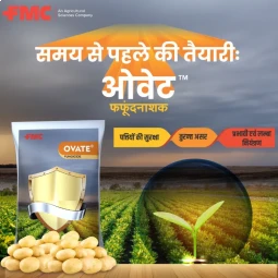 FMC OVATE Fungicide is a broad-spectrum, contact fungicide formulated with Chlorothalonil 75% WP. It provides multisite action for effective control of major fungal diseases such as downy mildew, tikka leaf spot, anthracnose, early and late blight, fruit rot, and scab. OVATE acts quickly to stop disease spread, improve plant health, and enhance crop yield. It is widely recommended for use in grapes, groundnut, apple, potato, and chili for complete leaf protection and better productivity.