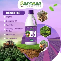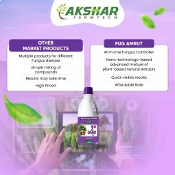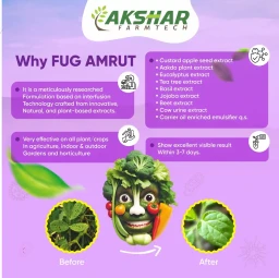 Fug Amrut is meticulously researched formulation, based on interfusion technology, crafted from innovative, natural and plant-based extract. The micellar system activated when mix with water and forms a thermodynamically stable nanofluid, leading to quick and spectacular results. The formulation’s targeted nano sized droplet size effectively disrupts the life cycle of most plant fungal strains and species without causing any harm to humans, plants and the environment..