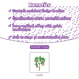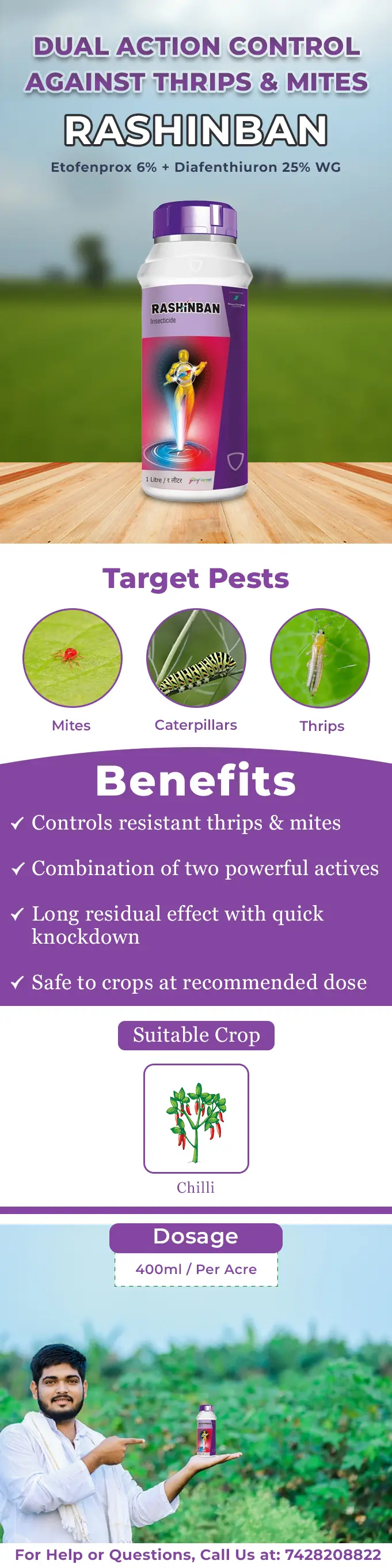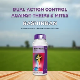 Godrej Agrovet Rashiban is a powerful combinational insecticide containing Fluxametamide 3.8% + Pyridaben 9.5% SC. Rashiban insecticide provides a dual-action formula that ensures broad-spectrum protection against various pests, leading to better crop growth for better profits.