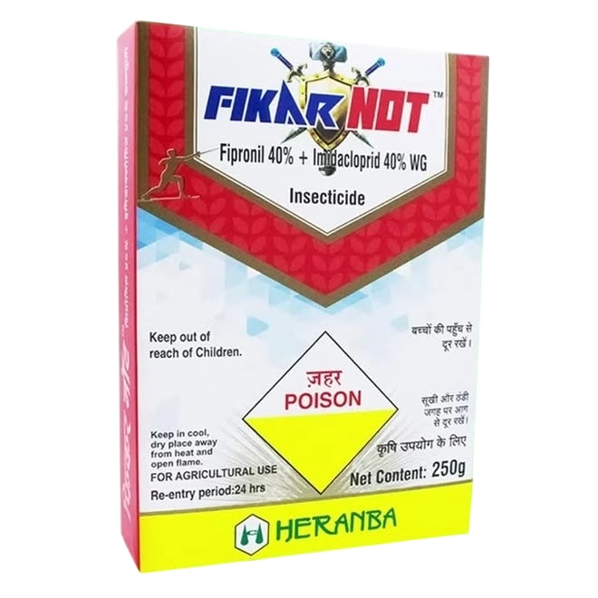 Heranba Fikar Not is a highly effective broad-spectrum insecticide combining Fipronil 40% and Imidacloprid 40% WG. Its unique dual mode of action offers quick knockdown and long-lasting residual control of soil pests, termites, and other insect infestations. Fikar Not protects crops, plantations, and even wooden structures from termite damage, ensuring better crop stand, yield, and structural safety. Ideal for agriculture, horticulture, and construction use.