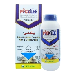 Heranba PICKLEE is a powerful systemic fungicide containing Picoxystrobin 6.78% w/w and Tricyclazole 20.33% w/w SC. This unique combination offers both preventive and curative action against a wide range of fungal diseases. Picoxystrobin provides long-lasting protection by inhibiting spore germination and fungal growth, while Tricyclazole specifically controls blast disease in rice. PICKLEE ensures healthier plants, higher yields, and improved grain quality, making it ideal for effective crop disease management.