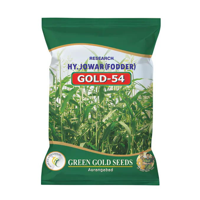 GREEN GOLD GOLD-54 Hybrid Sorghum Seeds are a premium multi-cut fodder jowar variety developed for maximum green fodder production and superior forage quality. This red-seeded hybrid is known for its fast growth, excellent regrowth ability, and high biomass yield, making it ideal for dairy farmers and livestock rearers. The plants produce juicy, soft, and sweet stalks that are highly palatable and nutritious for cattle. Gold-54 supports multiple harvests, with the first cut available within 45â50 days and subsequent cuts every 30â40 days. Its strong stalk strength, disease tolerance, and adaptability to diverse agro-climatic conditions ensure consistent fodder supply throughout the season.