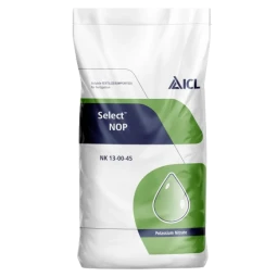 Select NOP 13-00-45 is recommended for any fertigation system and for all crops in soil or hydroponics. It provides an N:K balance of 13:45 which makes the product ideal for crops with high Potassium demands. Thanks to the synergistic effect between NO3 - and K2O, the crops can achieve high rates of absorption of both elements. This specialty product can be used in hard water conditions without any risk of precipitation, even when the irrigation water contains high calcium levels. It's a great alternative source of potassium in periods of high temperatures when the use of ammonium-based fertilizers should be minimized, especially in substrate-grown crops.