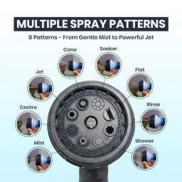 8 Spray Patterns: Includes mist, shower, jet, flat, cone, and more for versatile watering.