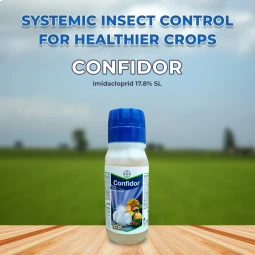 Bayer Confidor is a broad-spectrum insecticide containing Imidacloprid 17.8% SL, used to control sucking and chewing pests such as aphids, thrips, whiteflies, and more by disrupting their nervous systems and interfering with nerve impulse transmission, leading to paralysis and death. Confidor insecticide provides an effective formula that ensures better crop health through prolonged effectiveness and powerful working for better yields.