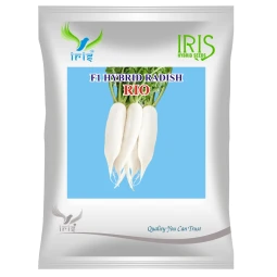 Iris Hybrid F1 Radish Rio is a premium early-maturing radish hybrid developed for semi-tropical conditions. The roots are long, glossy white, and measure around 20-25 cm, offering mild pungency and crisp texture. Plants feature palak-type foliage with vigorous growth, maturing within just 35 days after sowing. Its smooth curvy roots, uniform size, and appealing white color make it a top choice for farmers and home gardeners seeking high-quality, marketable radishes with excellent taste.