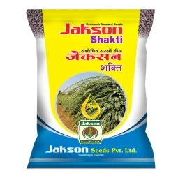 Jakson Shakti Research Mustard Seeds is a high-yielding hybrid developed by Jakson Seeds Private Limited. This variety grows to a height of 100-120 cm with strong branching, making it sturdy and adaptable. It has 8-10 main branches and 27-30 secondary branches, contributing to excellent productivity. The long pods (33-44 cm) bear medium-to-large black seeds, ensuring superior oil recovery and good market value. It performs well across varying climatic and soil conditions.