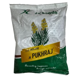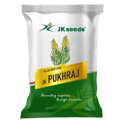 JK Pukhraj Yellow Mustard Seeds from JK Seeds are developed to provide farmers with higher productivity and better returns. This variety is known for its superior oil content, thick shiny yellow grains, and excellent pod formation. With 32-38 grains per pod and a maturity period of 110-115 days, it ensures reliable yield and quality. The plants produce more branches, more pods, and larger grains, making it a profitable choice for mustard growers across India.